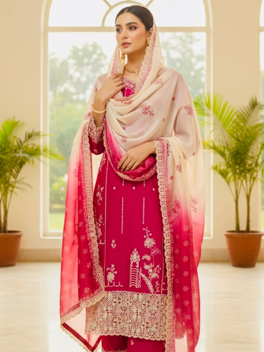 প্রিমিয়াম পিওর কটন এমব্রয়ডারি পার্টি ওয়্যার (সেমি-স্টিচড)
